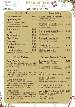 Book your table: call us on 01572787304 or email info@wymondhamwindmill.co.uk